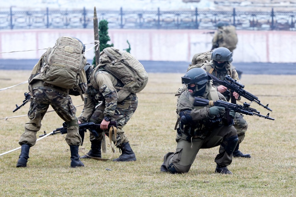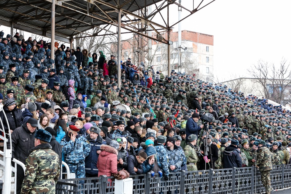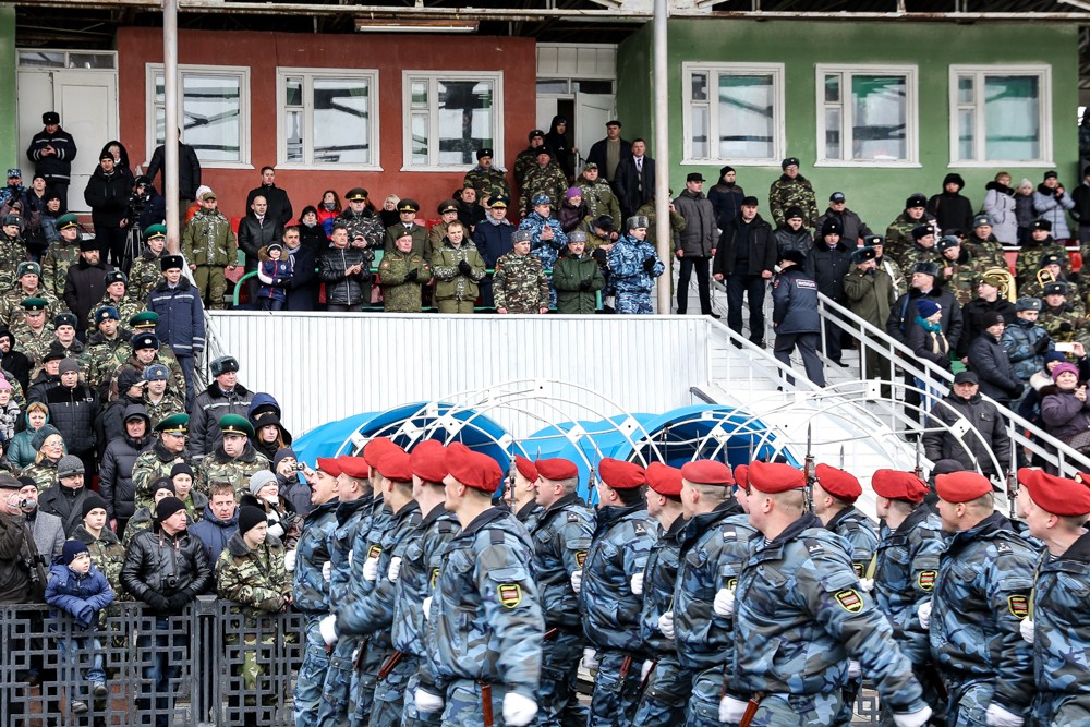 Финалом мероприятия стал торжественный марш бойцов элитных формирований с исполнением военной песни. В какой-то момент со зрительских трибун на марширующие колонны посыпались гвоздики.
