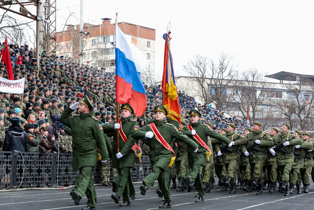 Восторг зрителей вызвало выступление роты почетного караула. В длинных парадных шинелях, с автоматами Калашникова и приднестровскими флагами вместо штыков армейская элита смогла передать красоту геометрии движения, используя свойства пространства и великолепное владение техникой упражнений с оружием.