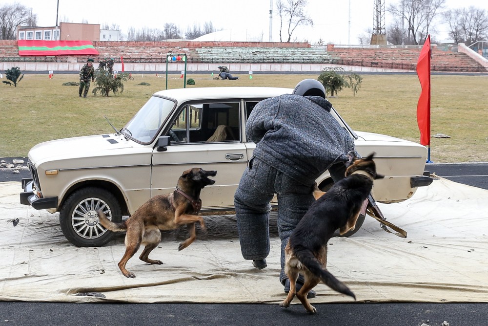 Интересное выступление показал и погранотряд КГБ. После демонстрации владения техникой рукопашного боя началась спецоперация по пресечению наркотрафика через границу. Ключевыми фигурами импровизированного представления оказались специально обученные собаки: малинуа и немецкая овчарка сумели обезвредить «членов ОПГ», используя быстроту лап и мёртвую хватку челюстей.