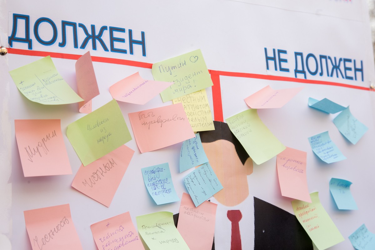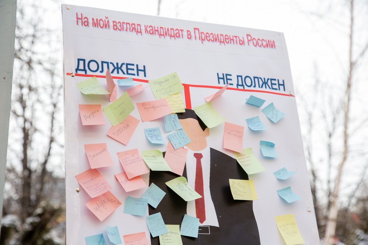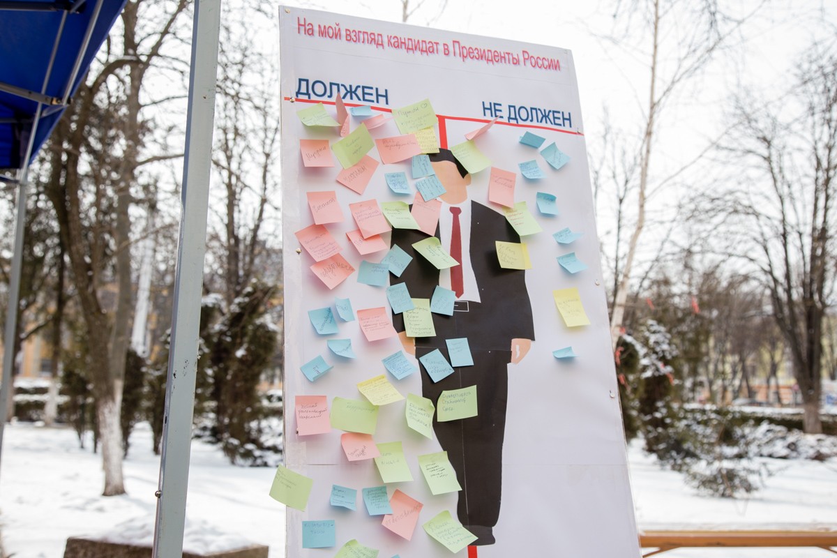 Тирасполь, 26 февраля. /Новости Приднестровья/. Студенты Приднестровского госуниверситета провели акцию «Портрет президента». Каждому желающему предложили описать главные качества, которыми, по его мнению, должен обладать будущий российский президент. Стикеры с характеристиками главы государства приклеивали на специальный стенд, выставленный перед корпусом главного здания вуза.
