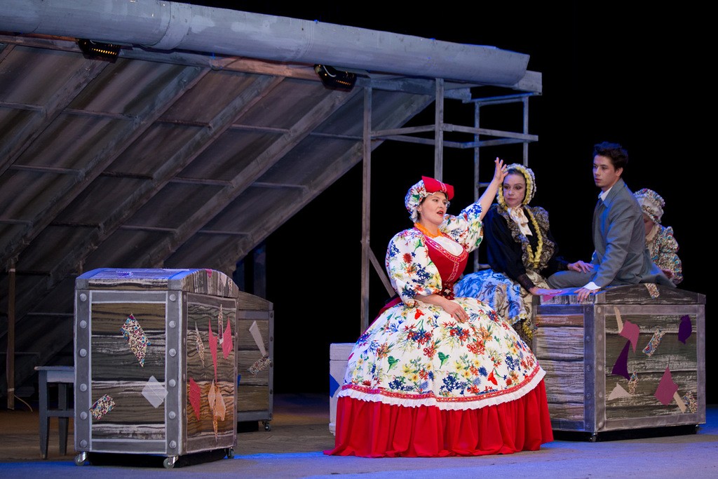 Весьма интересна и импозантна была в роли свахи Наталья Галатонова, которая привнесла в него свою «изюминку» – своеобразный акцент, поданный достаточно смело и одновременно «вкусно». Именно появление свахи не давало сходить с лица улыбкам и быть прикованным к сцене до конца спектакля. Манеры, величина широты ее души (в полном смысле этого слова), а также ярчайший наряд сделали образ более полным и насыщенным.