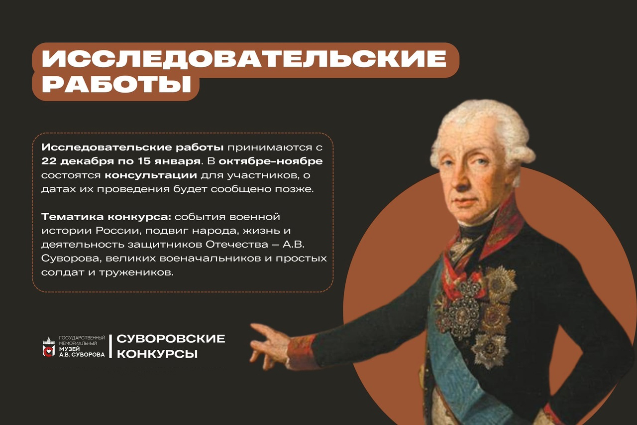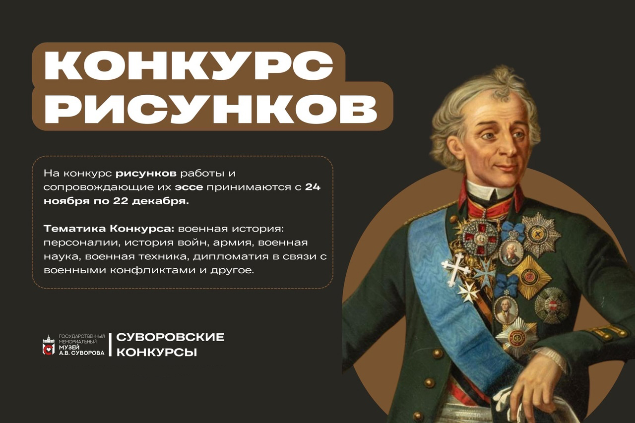 Речь идёт о Всероссийском суворовском конкурсе юношеских исследовательских работ и Всероссийском Суворовском конкурсе рисунков.