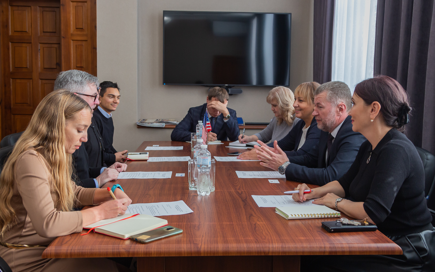 Тирасполь, 1 декабря. /Новости Приднестровья/. В Приднестровском госуниверситете им. Т.Г. Шевченко состоялась встреча ректора вуза Владислава Соколова с делегацией Посольства США в Республике Молдова. Обсуждались вопросы международного партнёрства с образовательными и научными американскими организациями, программы по обмену студентами и опытом в области образования, сообщает пресс-центр ПГУ.