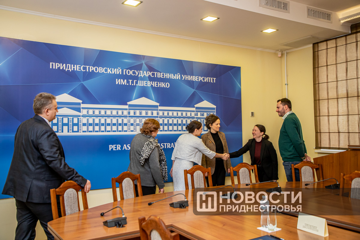 И. о. ректора вуза Лариса Скитская рассказала европейскому дипломату о направлениях подготовки, о научной деятельности и о международных связях университета. Она подчеркнула, что в образовательном пространстве Приднестровья неизменно сохраняется многообразие культур и традиций.