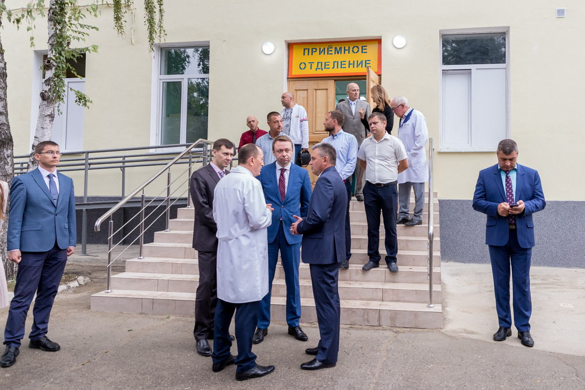 Он рассказал, что на сегодняшний день готова пока только половина приёмного отделения. Вторая часть здания, где расположены все функциональные службы, будет отремонтирована до конца года. Планируется, что там появятся обновлённый травматологический пункт, операционный зал, зал для эндоскопической диагностики и новые смотровые комнаты.