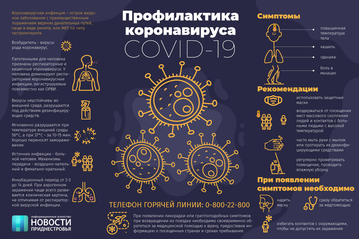 Тирасполь, 16 марта. /Новости Приднестровья/. Приднестровский Центр гигиены и эпидемиологии опубликовал меры профилактики коронавируса Covid-19.