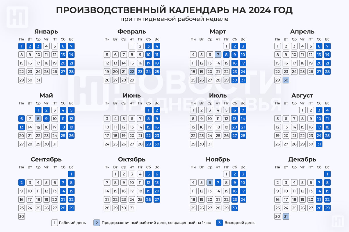 Тирасполь, 18 октября. /Новости Приднестровья/. Приказом Министерства по социальной защите и труду ПМР утверждён производственный календарь и плановое количество рабочего времени на 2024 год при пятидневной и шестидневной рабочей неделе.