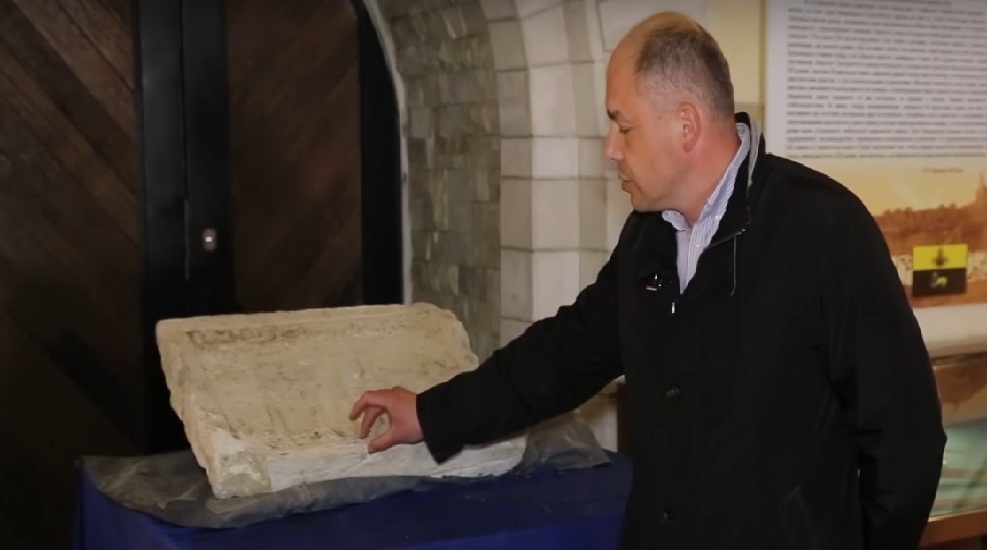 «Здесь видно, что часть плиты была отломана, когда её добывали. И уже впоследствии злоумышленники её приклеили на современные строительные материалы», — рассказал в интервью нашему корреспонденту директор исторического военно-мемориального комплекса «Бендерская крепость»Александр Свидерский.