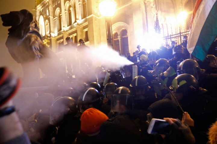 Столкновения манифестантов с полицией произошли в ночь на пятницу перед зданием парламента в Будапеште. Об этом сообщает «Интерфакс» со ссылкой на радиостанцию Б02.