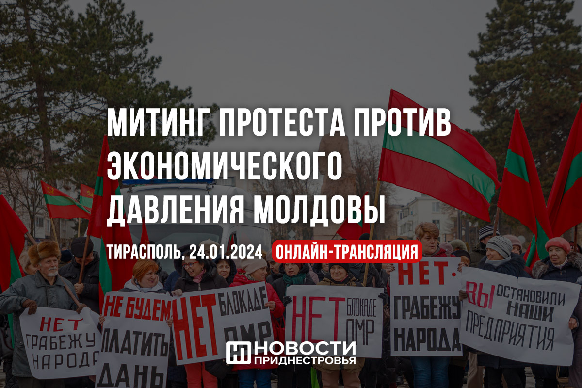 11:18 Митинг протеста против экономического давления Молдовы в центре Тирасполя