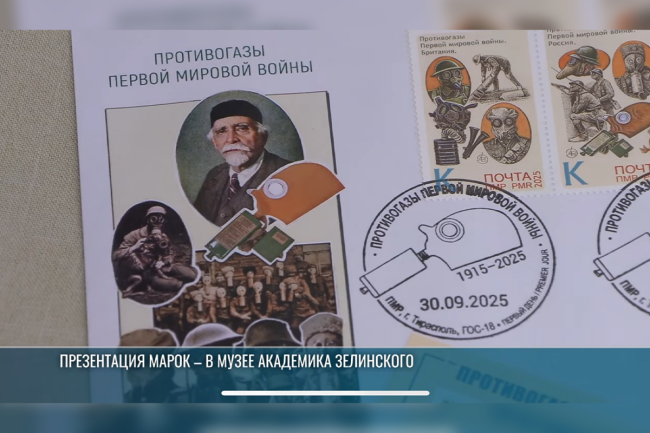Тирасполь, 1 октября. /Новости Приднестровья/. В музее академика Зелинского в Тирасполе презентовали новые почтовые марки. На них – «Противогазы Первой мировой войны». Автором эскизов марок выступил Владимир Чернецов. В этом году исполняется 110 лет, как наш земляк Николай Зелинский, изобрёл первый угольный противогаз.