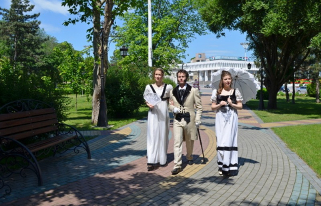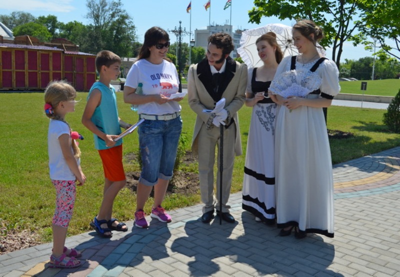 Тирасполь, 7 июня. /Новости Приднестровья/. В Тирасполе отметили день рождения великого русского поэта Александра Пушкина. Сегодня состоялась традиционная костюмированная прогулка «Пушкин в Тирасполе». Её организовала партия «Обновление» совместно с театром, актёры которого и сыграли поэта и двух его очаровательных спутниц.