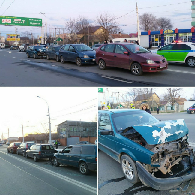 Первое ДТП случилось по улице Карла Либкнехта в 18:20. Водитель Volkswagen столкнулся с остановившимся Opel, который от удара продвинулся вперёд и повредил Nissan.