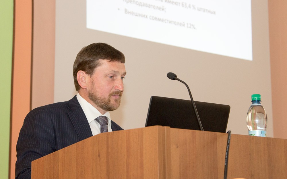 Декан аграрно-технологического факультета доцент Александр Рущук представил анализ состояния всех видов деятельности профессорско-преподавательского состава аграрно-технологического факультета. По его словам, факультет уже давно практикует межфакультетское взаимодействие.