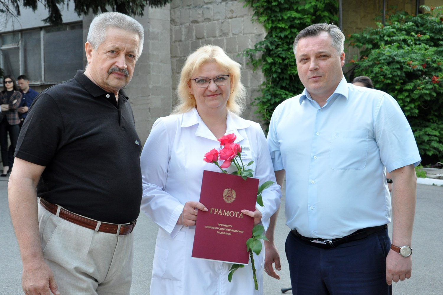 Дубоссары, 17 июня. /Новости Приднестровья/. В Дубоссарах в преддверии Дня медицинского работника (будет отмечаться 19 июня) вручили государственные награды представителям отрасли здравоохранения: работникам поликлиники, Центральной районной больницы, Центра гигиены и эпидемиологии, стоматологической поликлиники.