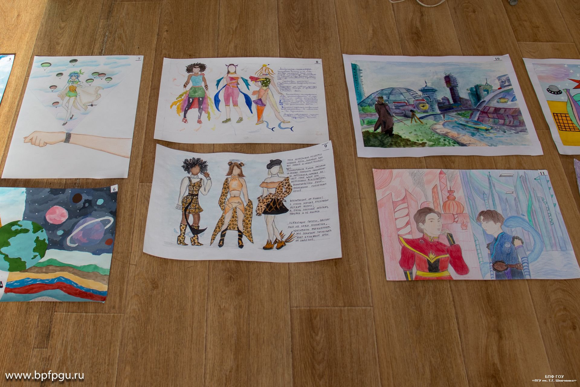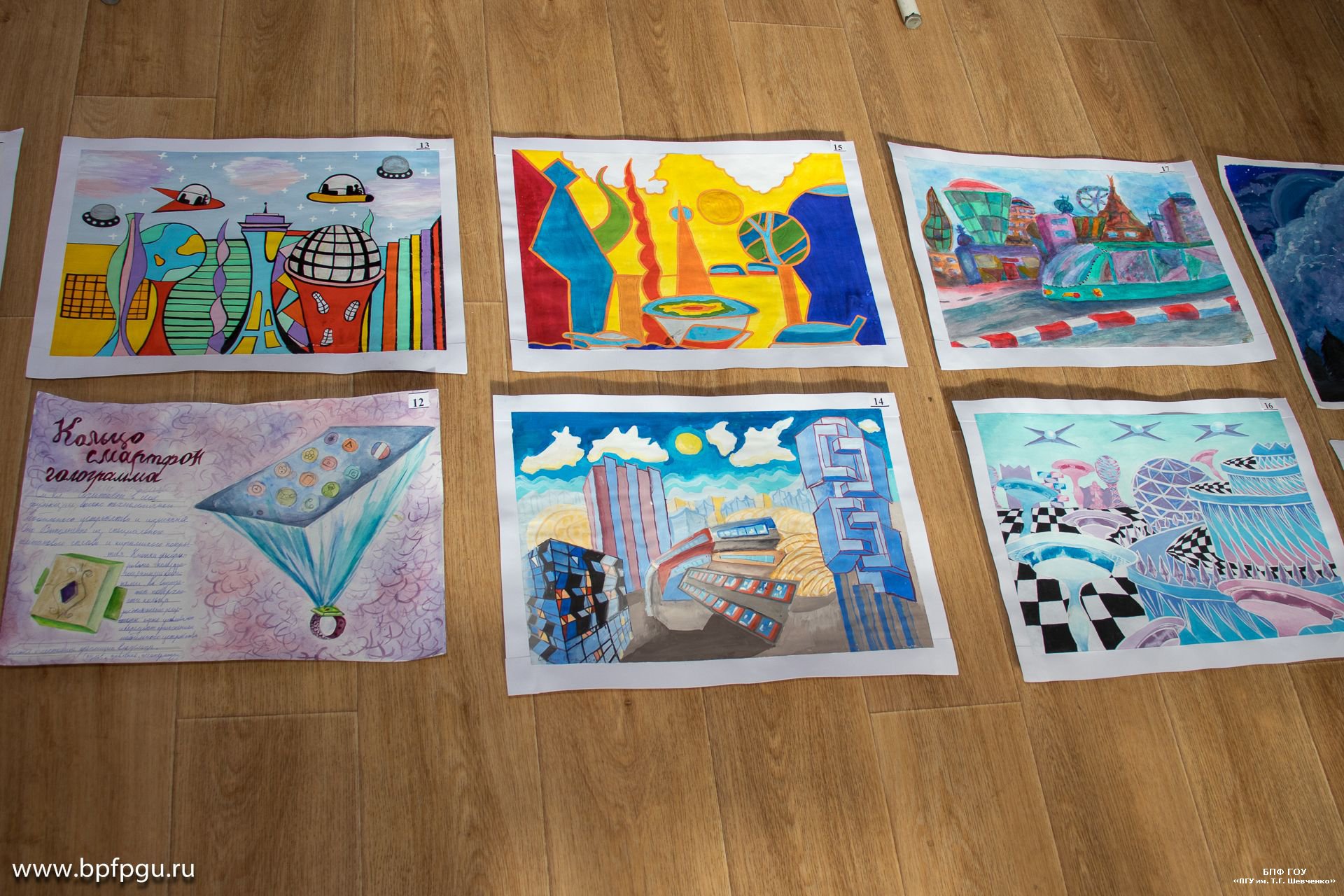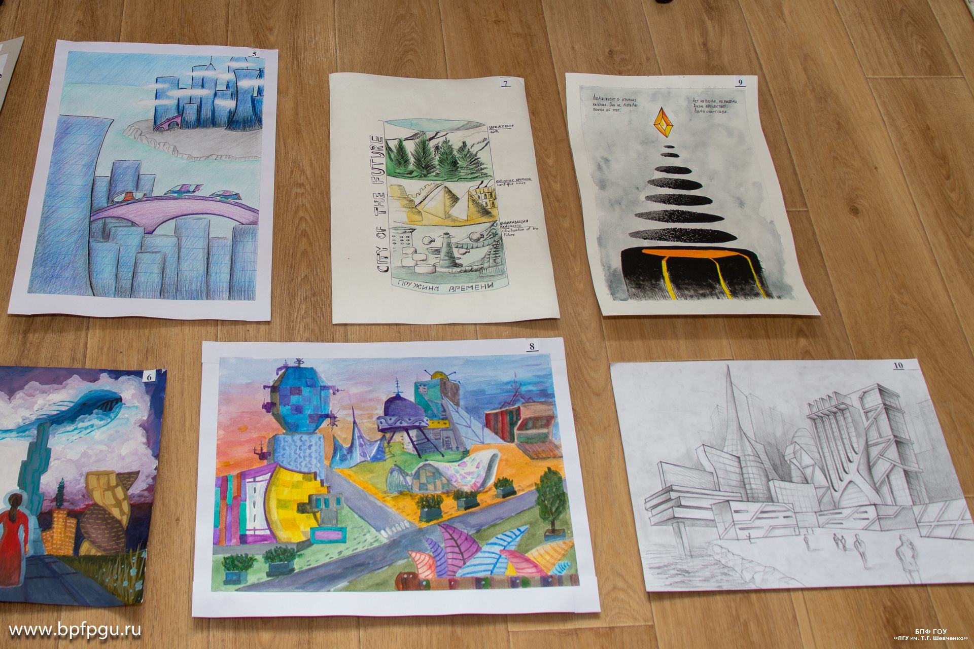 В своих работах юные художники показали достижения науки, деятельность учёных и практические результаты их трудов. Часть экспозиции – архитектурные эксперименты и пейзажи городов будущего. Также на выставке можно будет увидеть футуристические дизайны домов, гаджетов и средств передвижения.