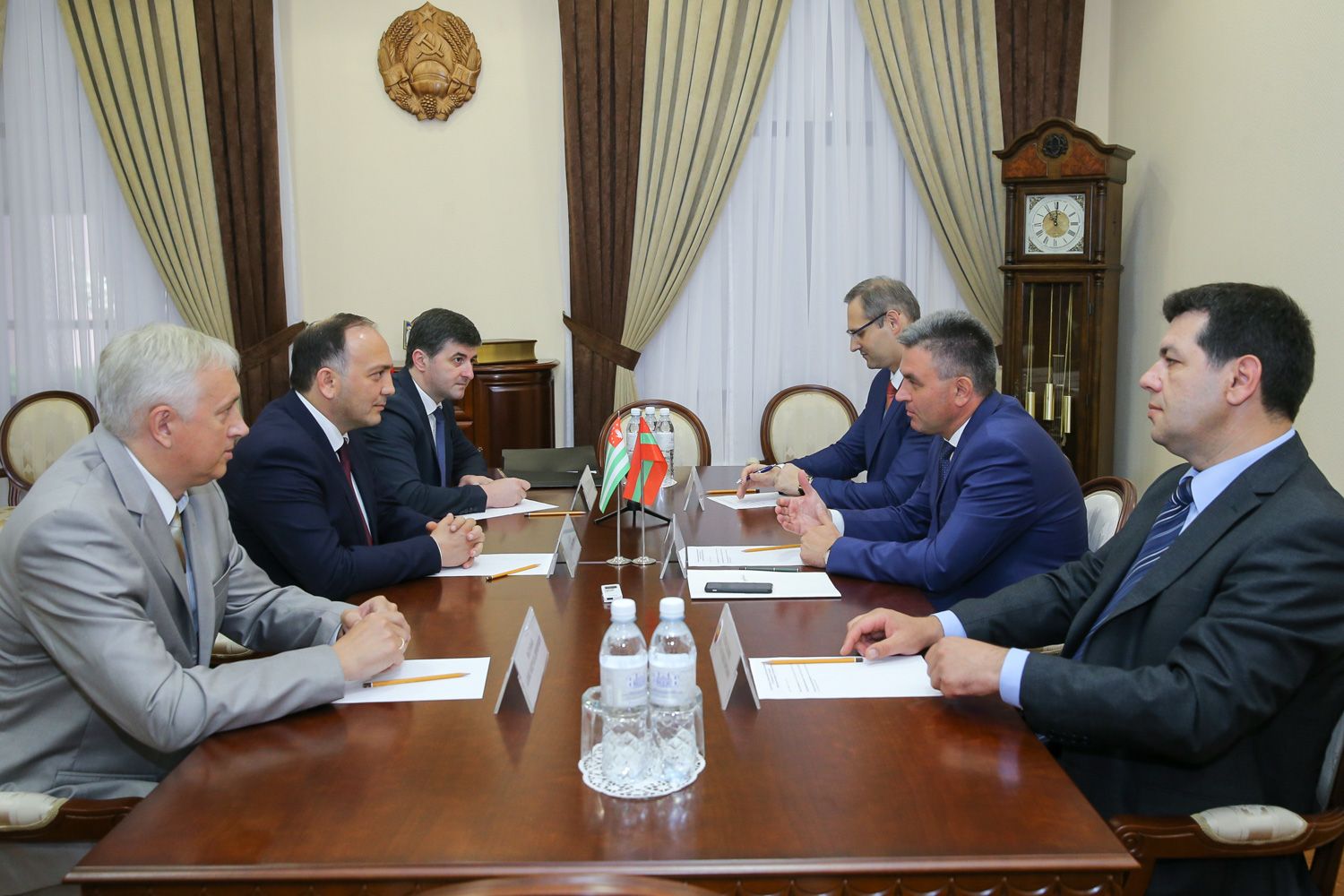 На встрече также присутствовали глава Представительства Республики Абхазия в Приднестровье Александр Ватаман, министр иностранных дел ПМР Виталий Игнатьев и посол по особым поручениям Руслан Слободенюк.