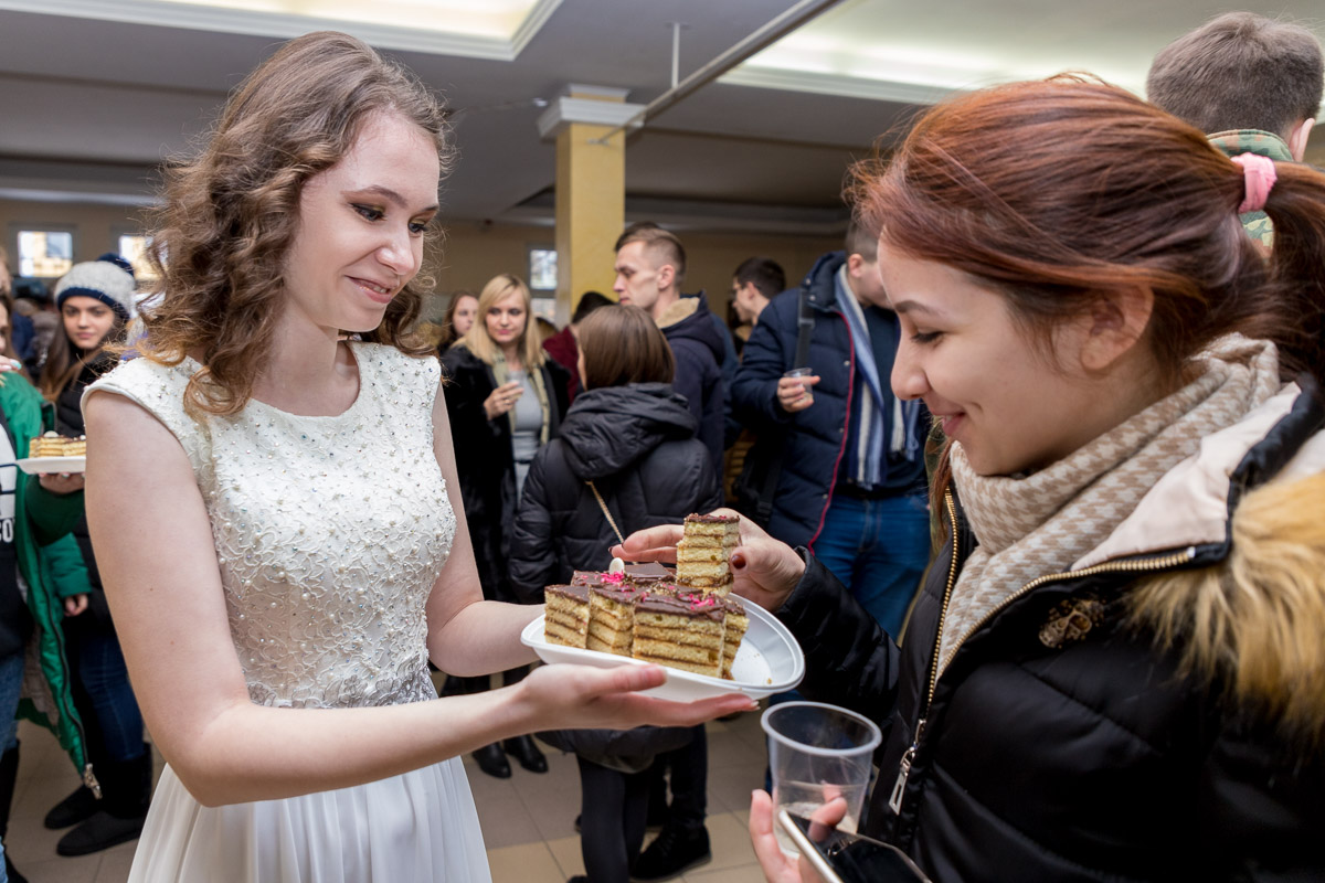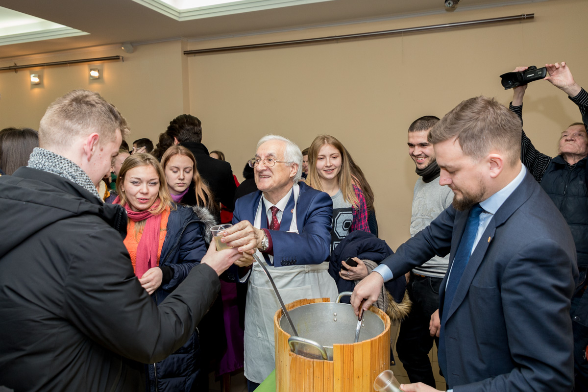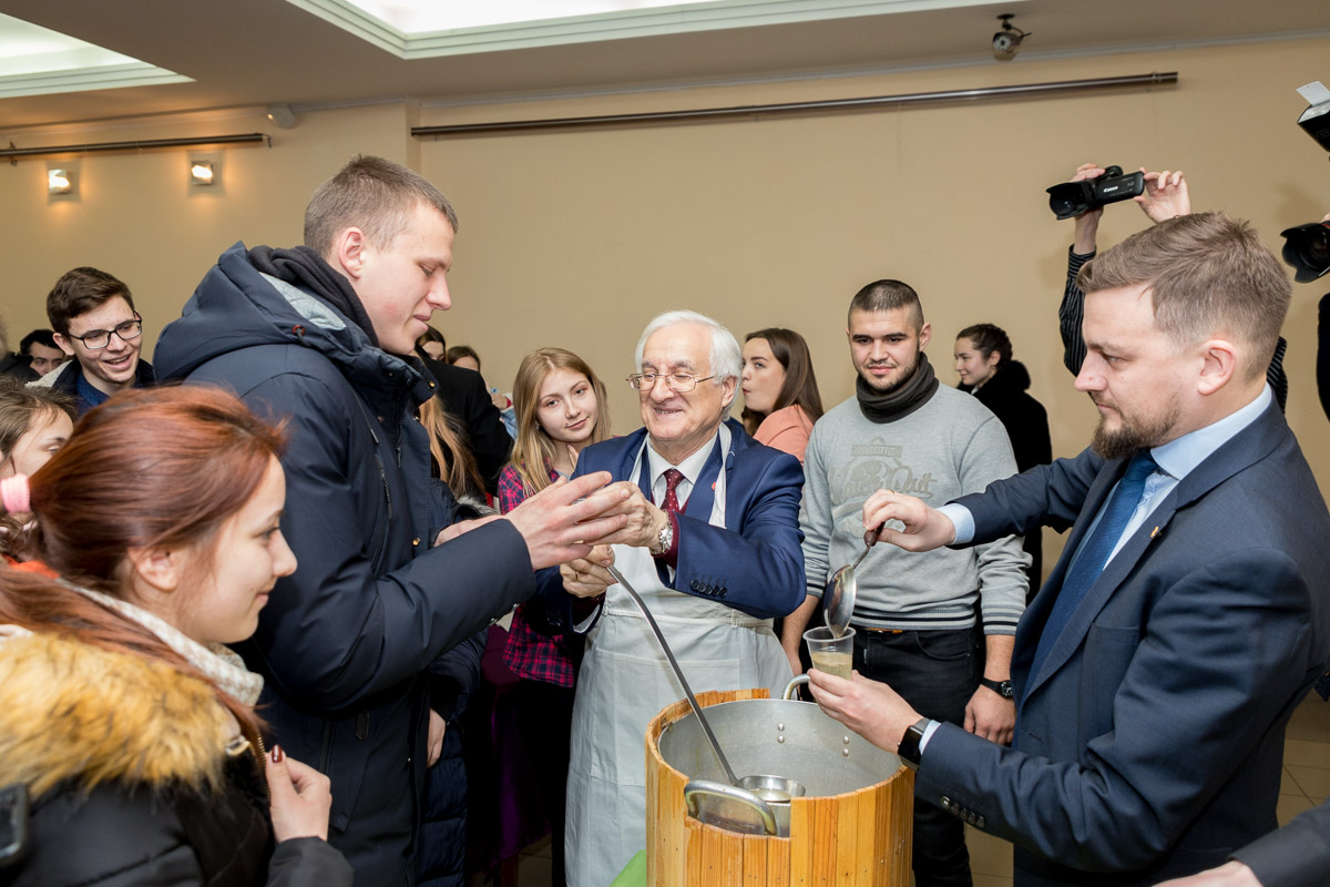 После развлекательной программы всех студентов ждала традиционная дегустация «Гагаринский напиток». Только в этот день стаканчик энергетического коктейля можно было получить из рук ректора госуниверситета.
