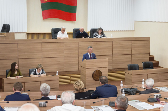 Следующий момент: переход от Дня Победы ко Дню Европы. Все эти события вроде бы разрозненные, но на самом деле они системны. Система состоит в том, что против Приднестровья ведется гибридная война. В нее включены политические, экономические, гуманитарные, культурные, исторические рычаги. Народ пытаются повернуть в сторону от его истории, от истоков. Мы все это видим на практике. Нами проводятся определенные мероприятия. Мы задействуем силовые структуры, разрабатываем планы. Все это хорошо. Но без народа, общественности, народной дипломатии нам будет крайне сложно. В этих условиях важна консолидация всего общества», — отметил Президент ПМР Вадим Красносельский, выступая перед членами Совещательного собрания.