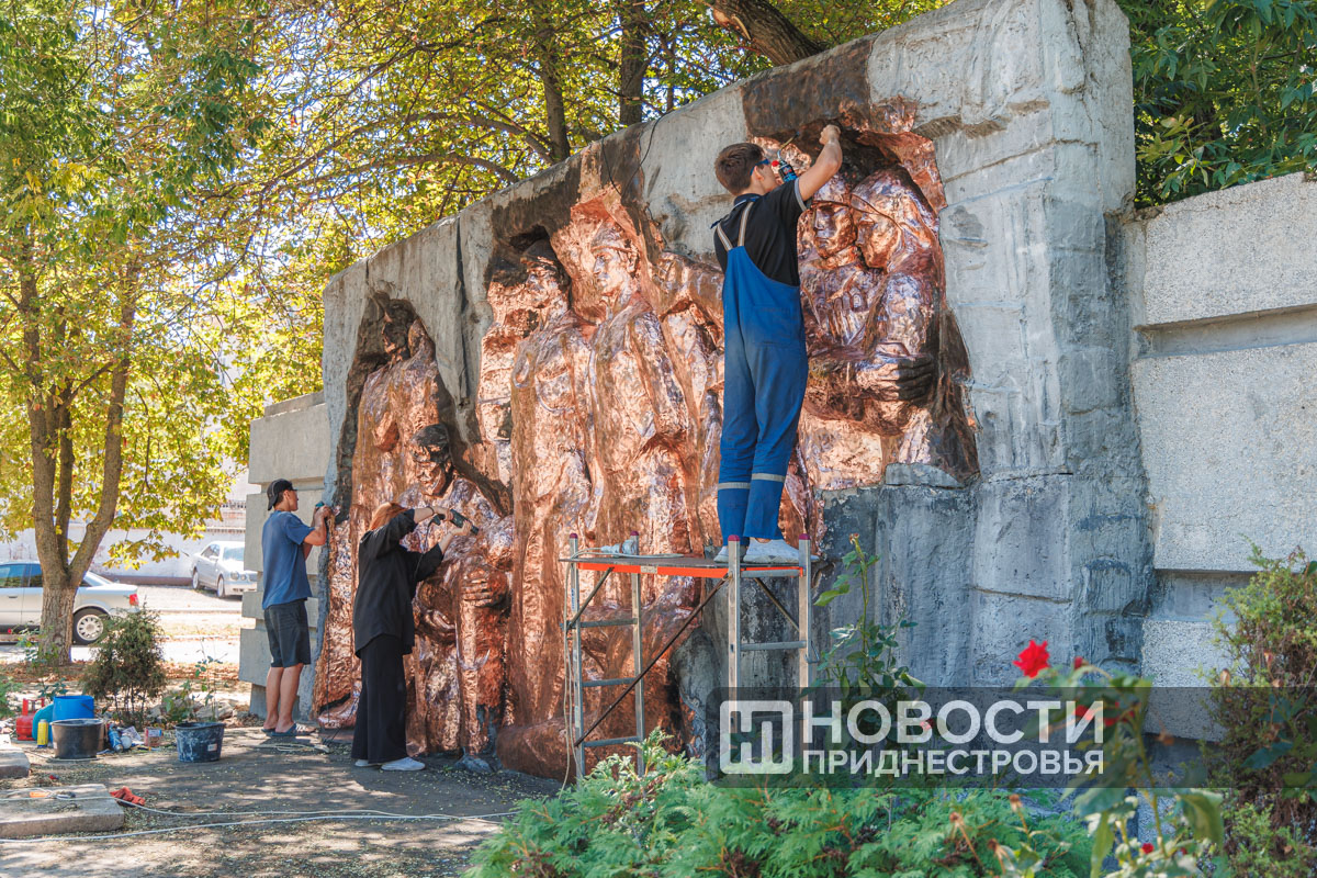 «В памятнике были утрачены многие фрагменты: листы обшивки, буквы, надписи. Изначально они были сделаны особым шрифтом на молдавском и русском языках. В 90-е годы их повредили и восстановили в другом виде и только на русском. В наших планах - вернуть им прежний вид. За помощью в этом деле мы обратились к сотрудникам Бендерского краеведческого музея, а также изучили архивные снимки», – рассказал ректор Бендерского высшего художественного колледжа.
