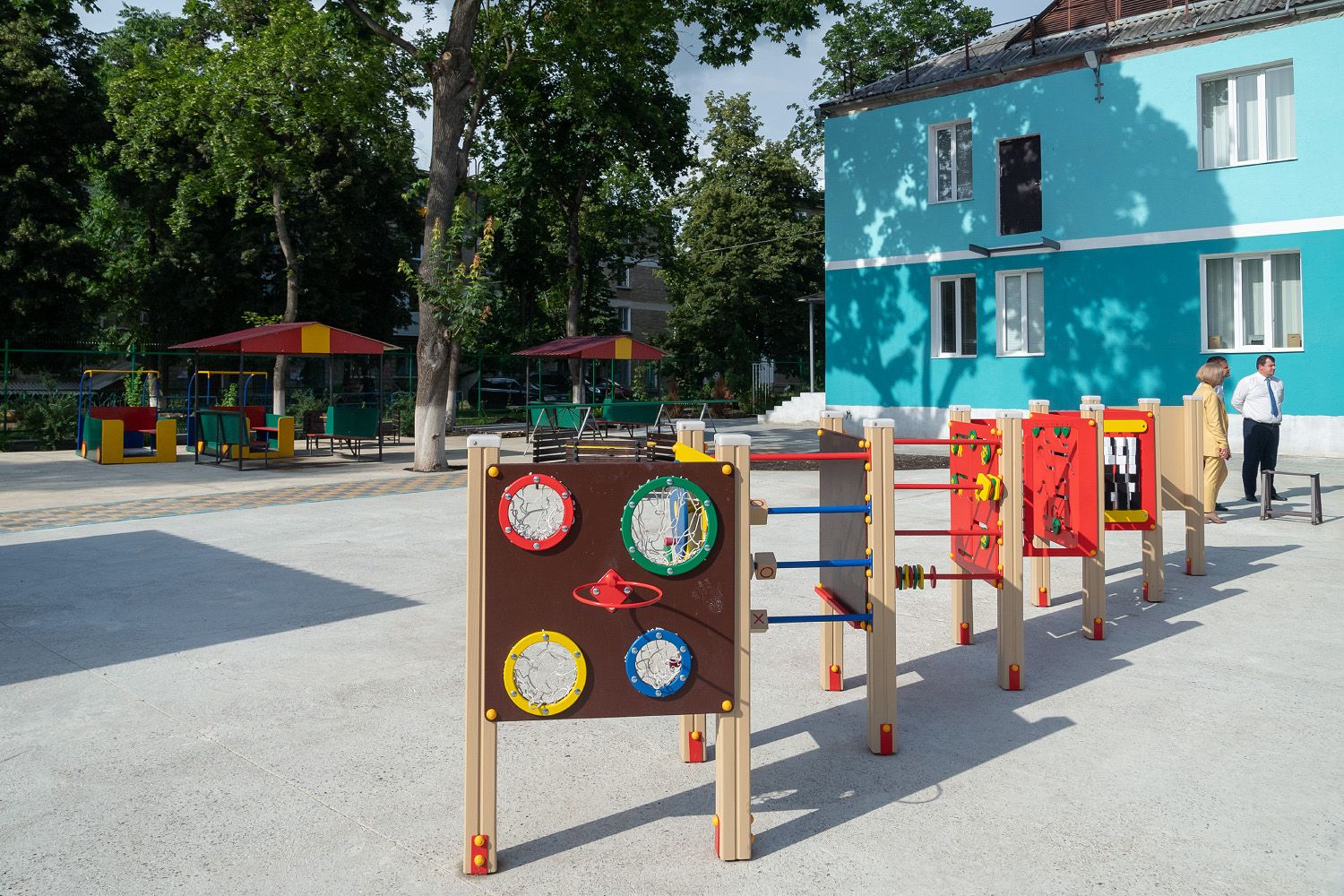 Благоустраивается прилегающая к учреждению территория. Подход к игровому комплексу оборудован пандусами. Строят гараж для специализированного транспорта. Глава государства обратил внимание на необходимость максимального озеленения участка. Основной объем запланированных работ должен быть завершен к началу сентября.
