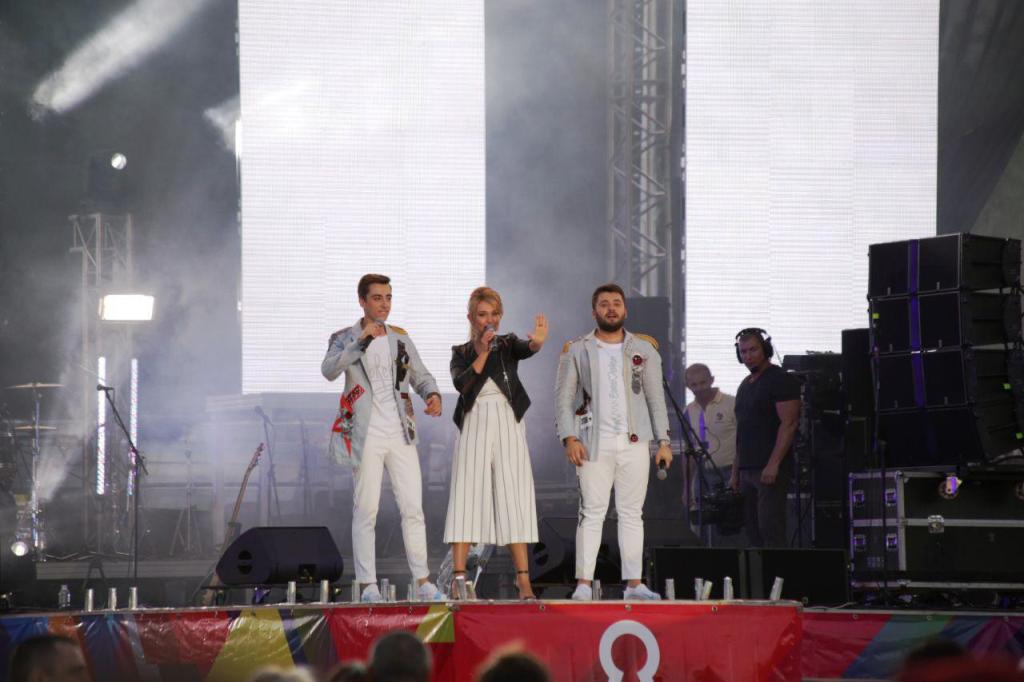 Первыми жителей и гостей столицы порадовали вокалистки «Soprano Турецкого». Затем на сцену поднялись всеми любимые приднестровские звёзды – группа «DoReDos». Артисты сегодня желали приднестровцам счастья, Тирасполю – процветания, республике – мира.