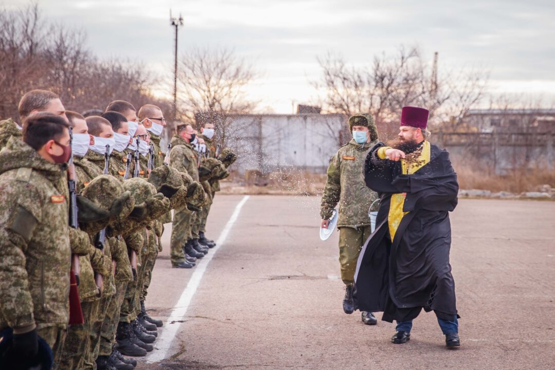 Войсковой священник благословил новобранцев на ратную службу, а командиры пожелали ребятам крепкого здоровья, мирного неба над головой и легкой, успешной службы. Церемония завершилась торжественным маршем военнослужащих.