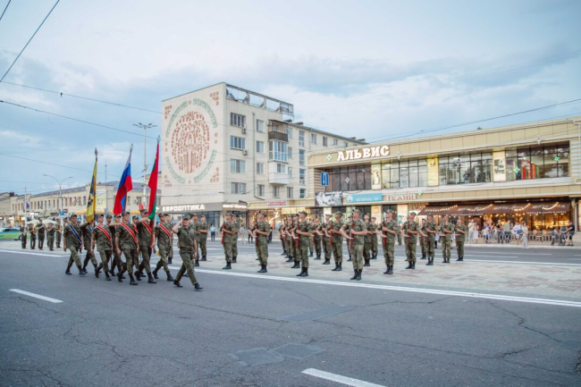 В День Республики показательное выступление военнослужащих роты Почётного караула и военных музыкантов состоится сразу по окончании церемоний поднятия флагов и возложения цветов на Мемориале Славы Тирасполя.