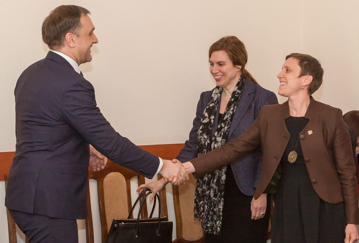 Учитывая прошедший праздник, спикер парламента Александр Щерба, приветствуя шведскую делегацию, а в ее составе были исключительно женщины, поздравил их с днем 8 Марта и пожелал удачи, добра, достатка, любви.