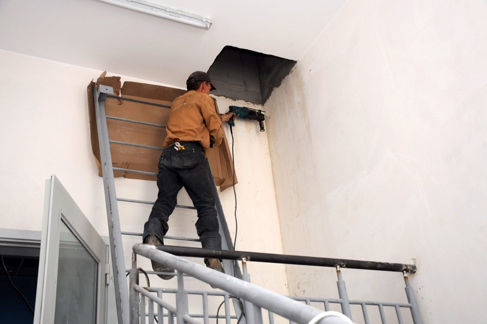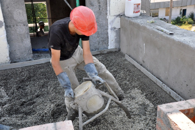 «Сейчас устанавливается первый слой из пенополистеролбетона. Он имеет практически нулевую теплопроводность, не впитывает в себя воду, а значит, нам не нужно ставить дополнительную гидроизоляцию, уменьшается нагрузка на плиту перекрытия», – рассказал журналистам инженер строительного контроля Иван Хомишин.