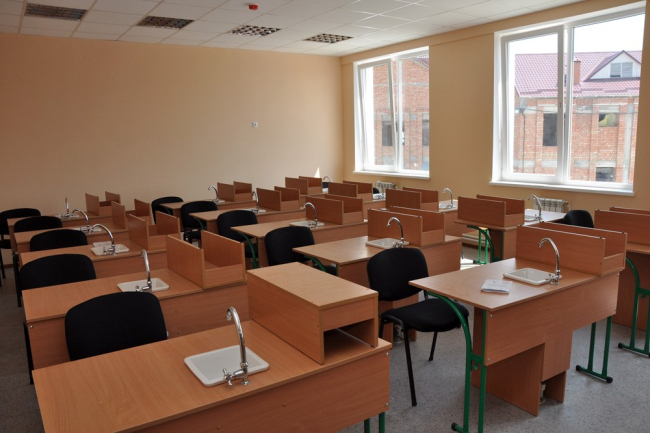 К 1 сентября в школе планируют завершить не только строительные работы, но и установить весь необходимый инвентарь. Пока в уже отделанных помещениях монтируют современное кухонное оборудование. Полностью готов кабинет химии, где установили шкафы для реагентов, каждая школьная парта оборудована раковиной с краном с центральной подачей воды, что должно помочь школьникам при проведении лабораторных работ и экспериментов.