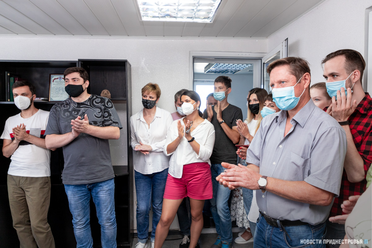 Поздравить коллег пришёл и главный редактор Первого Приднестровского телеканала Виктор Савченко.