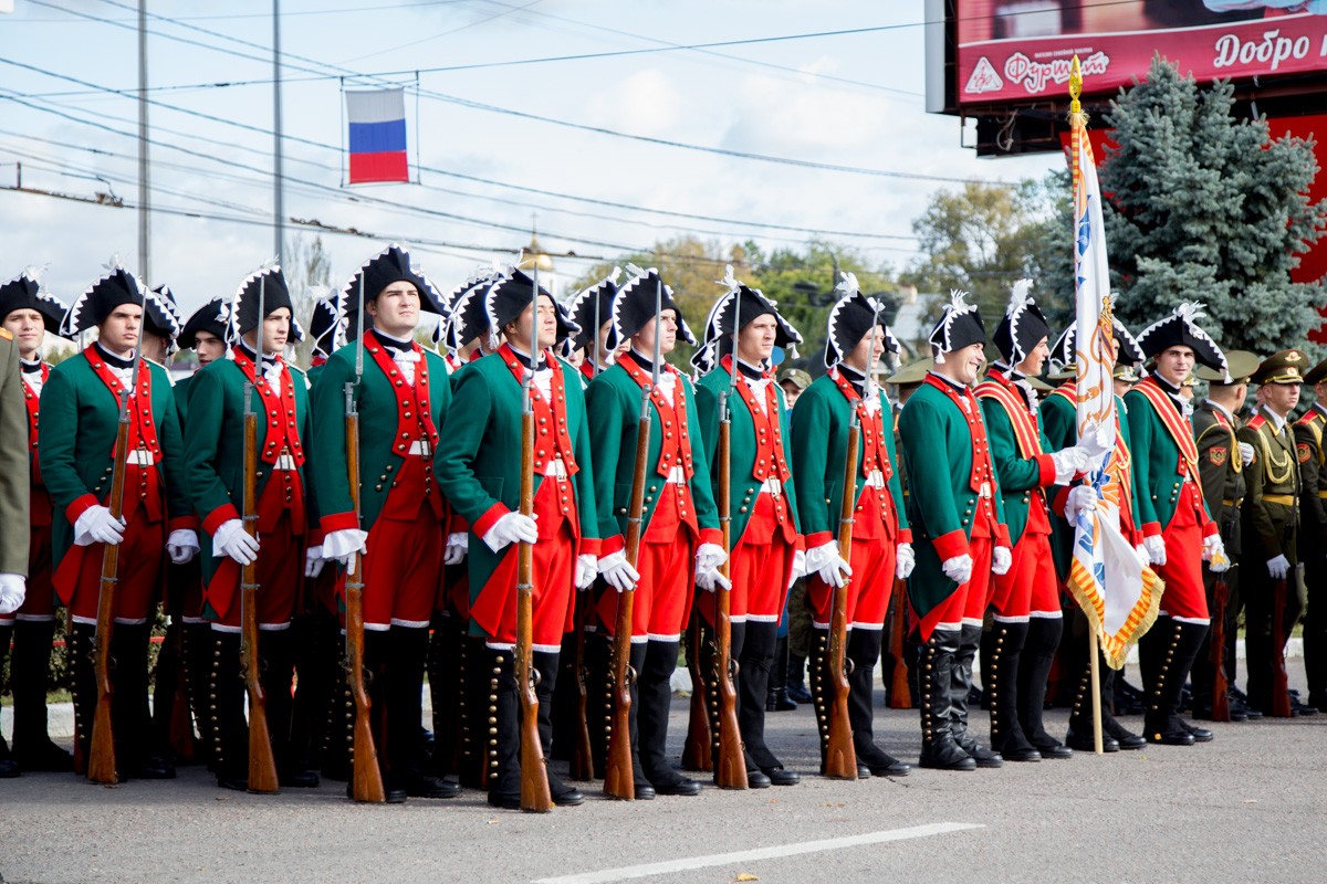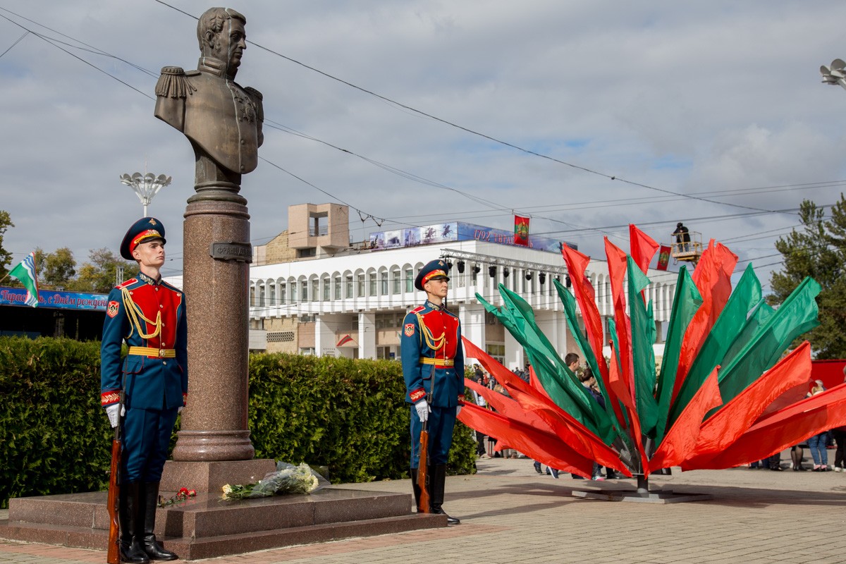 Затем колонна направилась к скверу Де Волана, присутствующие возложили цветы к бюстам основателей Тирасполя – Екатерины II и первого архитектора города, в честь которого и получил название сквер. Также горожане и гости праздника почтили память генералиссимуса Александра Суворова.