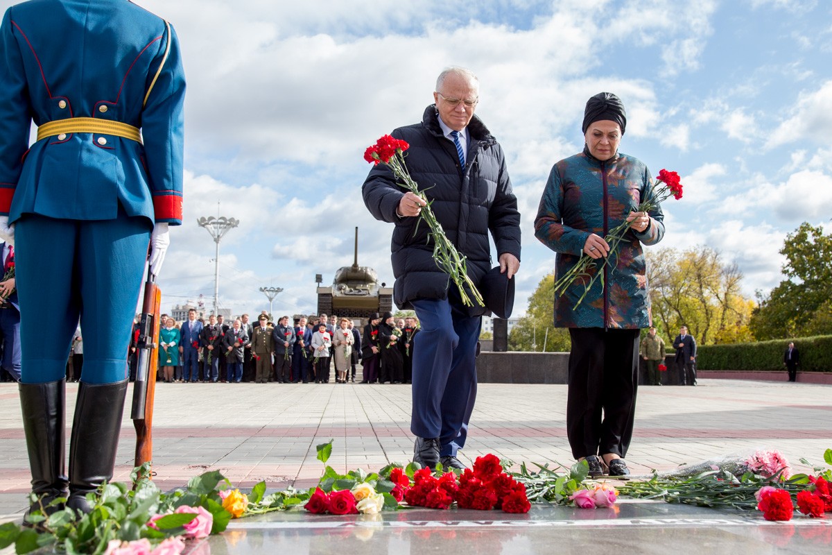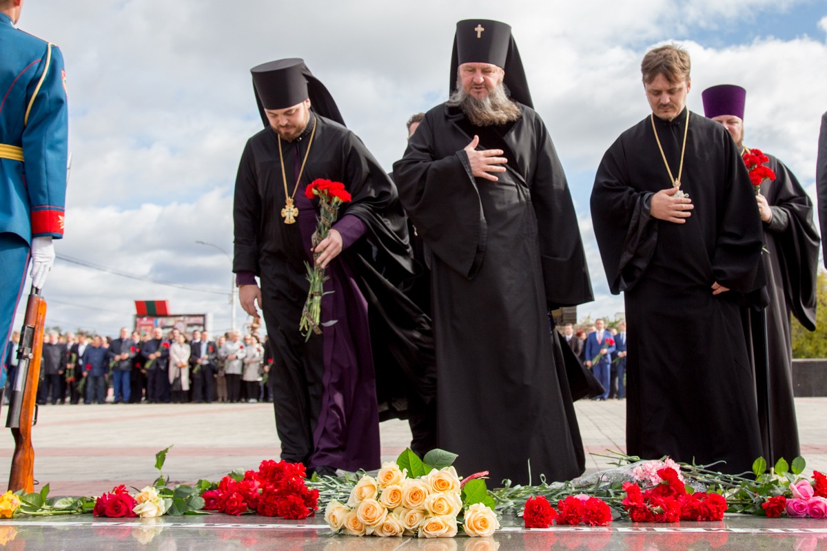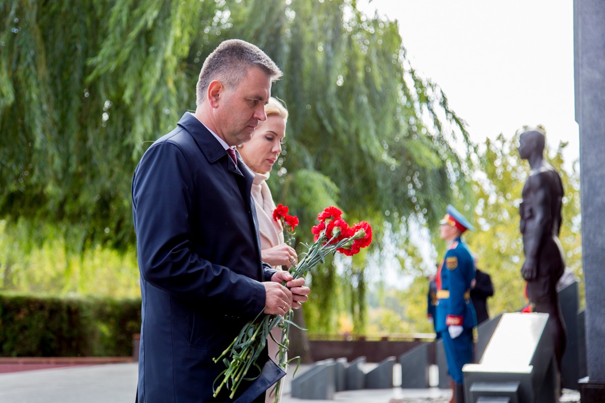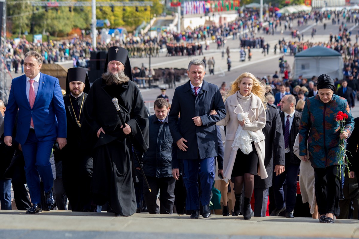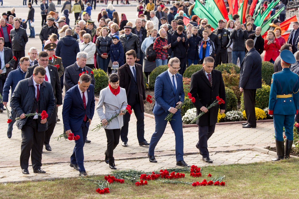 14 Окт.., 2017, 14:31Тирасполь, 14 октября. /Новости Приднестровья/. Череда праздничных мероприятий, посвящённых 225-ой годовщине образования Тирасполя, продолжилась возложением цветов на столичном Мемориале Славы. В торжественной церемонии приняли участие Президент ПМР Вадим Красносельский, Чрезвычайный и Полномочный посол РФ в Молдове Фарит Мухаметшин, руководство Верховного Совета и Правительства республики, городские власти, общественность Тирасполя.