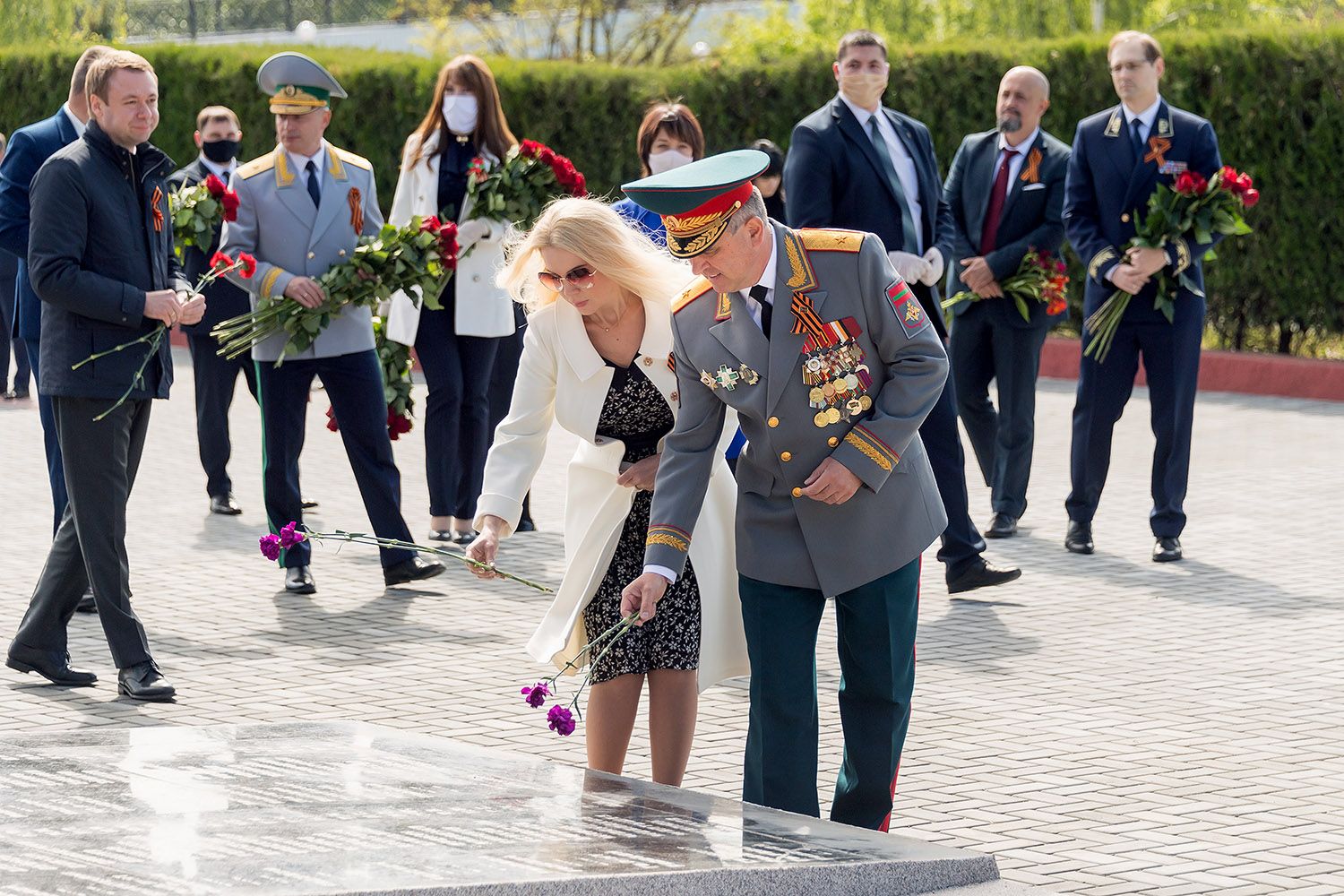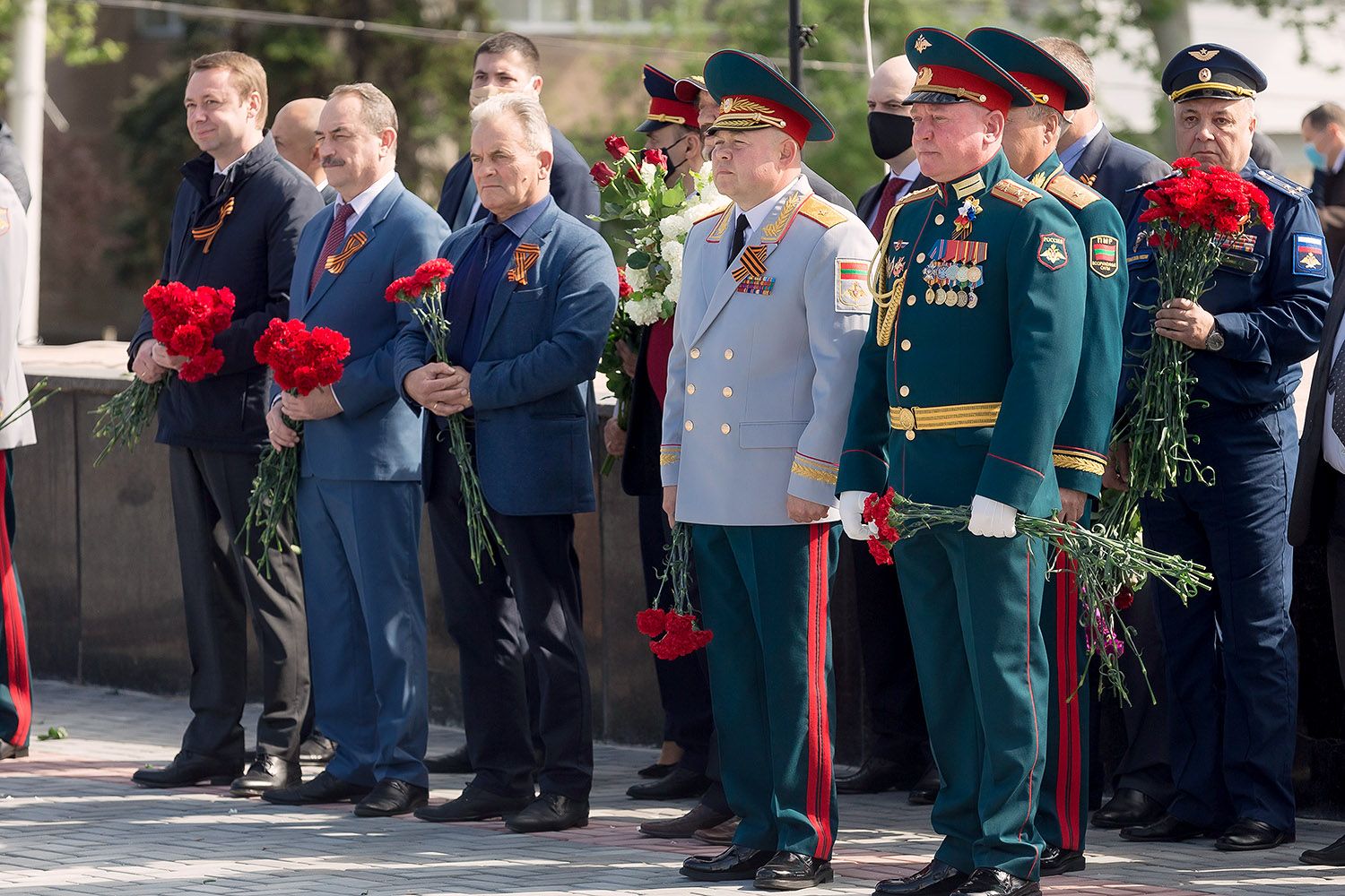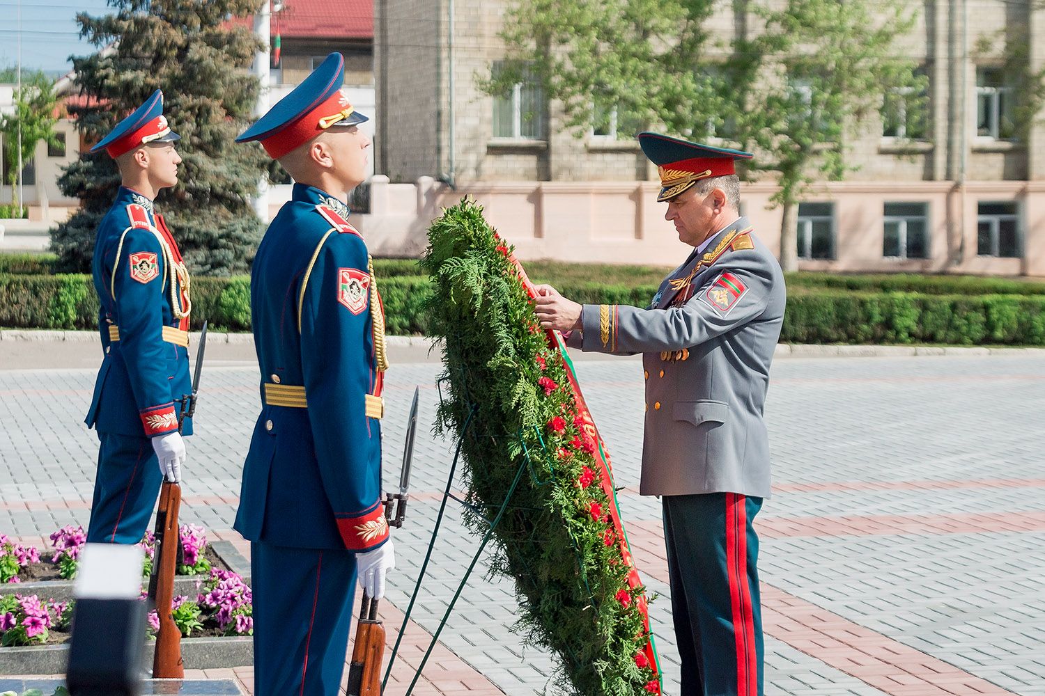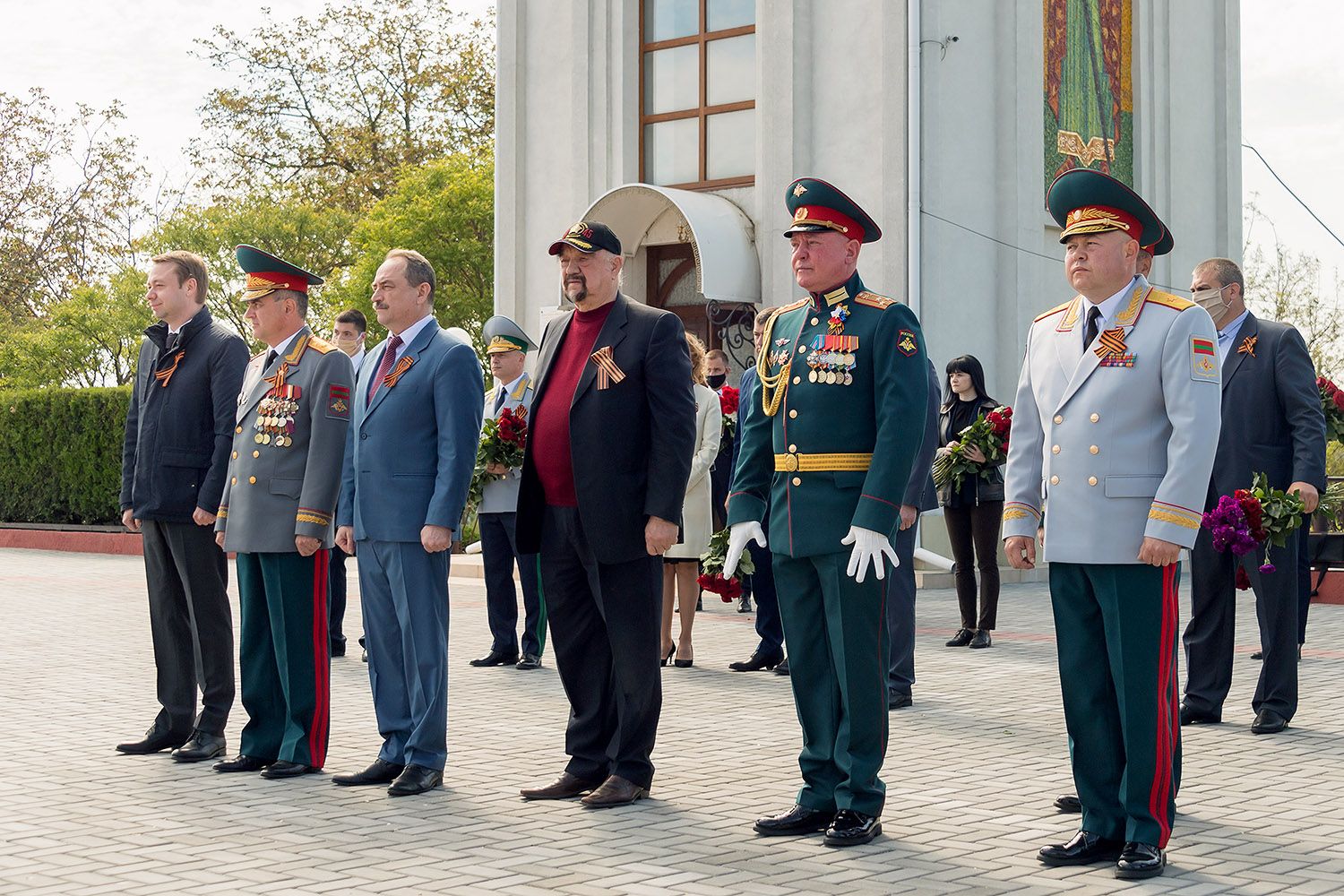 Вместе с главой государства в торжественной церемонии возложения цветов участвовали Первый Президент ПМР, руководящий состав Администрации Президента ПМР, органов законодательной, исполнительной и судебной власти, министерств и ведомств, начальник Оперативной группы российских войск в Приднестровье, глава Тираcпольской администрации и председатель горсовета, парламентарии.