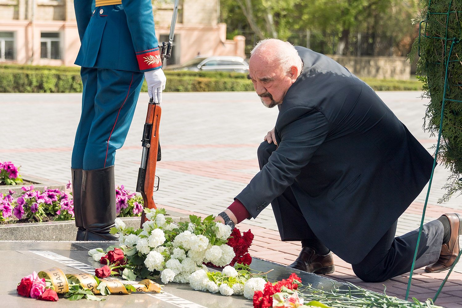 В столице низким поклоном выразил благодарность и почтение погибшим и умершим участникам Великой Отечественной войны Президент Приднестровской Молдавской Республики Вадим Красносельский. Памятный венок у Вечного огня – символ благодарности, как и россыпь цветов, возложенных на каменные плиты с высеченными именами героев и к подножиям памятников, установленных на столичном Мемориале Славы.