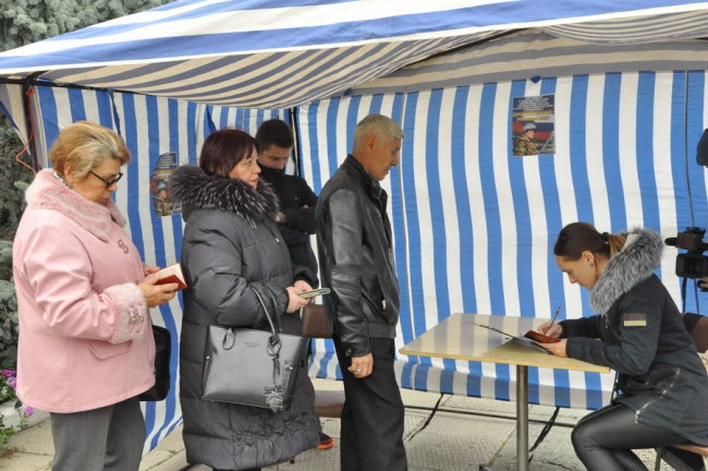 Уже в первый час работы рыбничане активно подходили к волонтёрам, чтобы оставить свой голос за сохранение действующего формата миротворческой операции и присутствия российских войск в Приднестровье.