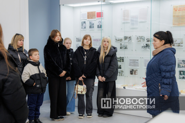 В Историко-краеведческом музее в столице их ждал опытный экскурсовод, который начал свой рассказ в зале Становления и развития приднестровской государственности. Внимание школьников привлекло многообразие экспонатов: фотографии, официальные документы, награды, личные вещи участников молдо-приднестровского конфликта и многое другое.