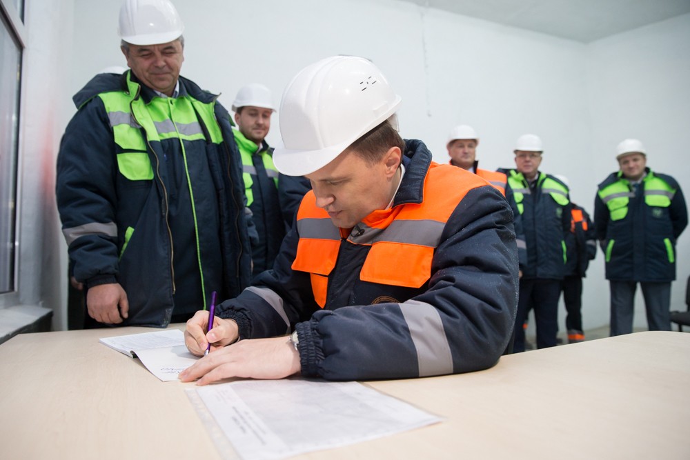 Почетное право пуска печи № 1 было предоставлено Главе государства. Затем в журнале операционного контроля, куда вносятся все технологические параметры процесса, Президент Евгений Шевчук оставил памятную запись.