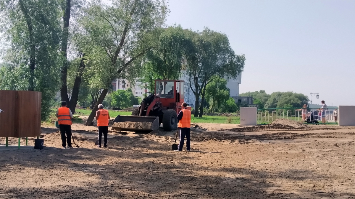 Накануне на пляж завезли песок, разровняли территорию. Для безопасного купания детей в воде установили ограждение. Ранее на берегу построили спасательную станцию, установили теневые навесы, питьевой фонтан, раздевалки и душевые. Однако в связи с карантином пользоваться ими пока нельзя.