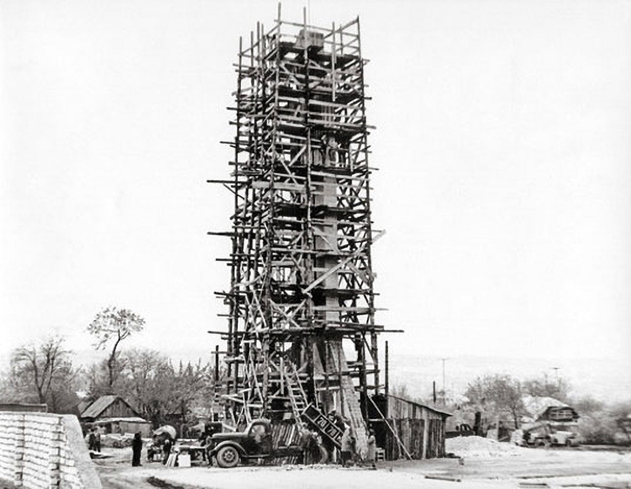 «Для нашей организации строить было очень тяжело, потому что техники не было. Не было подъемных механизмов: ни вышек, ни кранов, ни металлических разборных, как сейчас, лесов и подмостей. Нам приходилось делать леса из брёвен – ставить одно на другое, крепить и поднимать аж на все 22 метра», – рассказывает он корреспонденту «ЛикТВ».