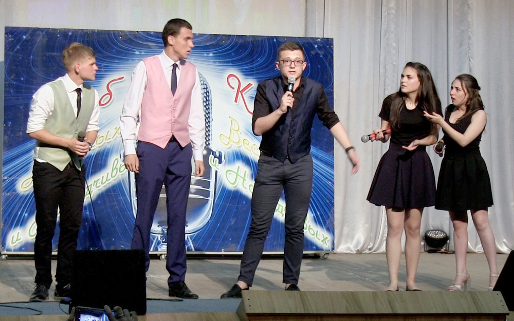 Затем последовал «Биатлон»: студенты зачитывали шутки, которые приготовили заранее. Во время «Разминки» вопросы финалистам задавали судьи.