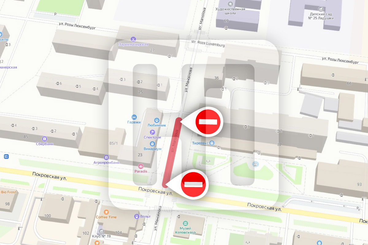 Движение автотранспорта будет ограничено от жилого дома № 25 до ул. Покровской