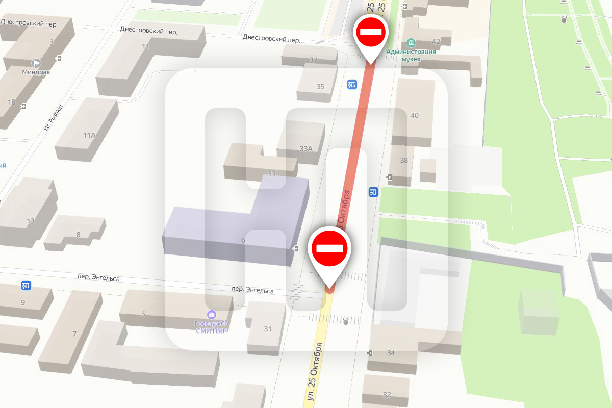 Тирасполь, 22 июня. /Новости Приднестровья/. С 24 июня по 1 июля в Тирасполе полностью перекроют движение автотранспорта по улице 25 Октября – от пер. Энгельса до пер. Днестровского.