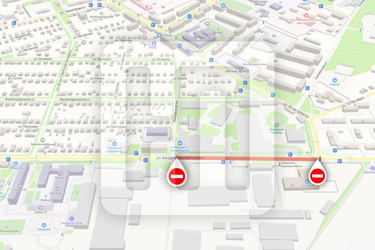 С 26 июня в Бендерах на месяц перекроют часть улицы Бендерского Восстания