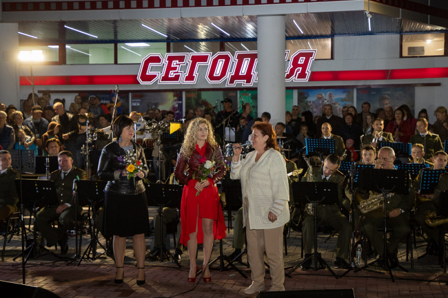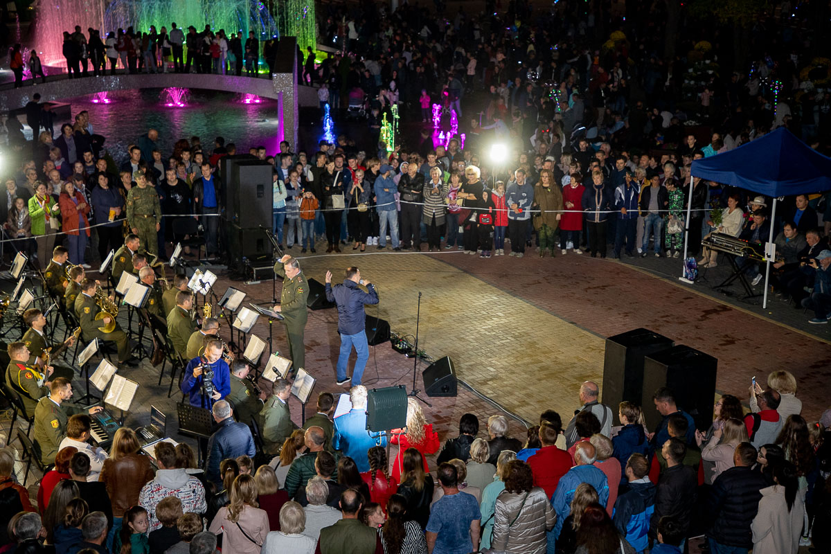 Ставшие уже традиционными вечерние концерты у фонтана всегда собирают много зрителей. Сегодняшний концерт не был исключением – сотни горожан не только наслаждались замечательным исполнением известных композиций солистами оркестра, но и подпевали, и танцевали.
