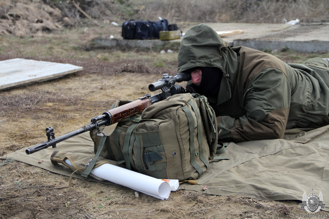 Бойцы СОБР «Днестр» вели тренировку по стрельбе в парах из-за укрытия со сменой положения оружия. В данном упражнении важна слаженность действий прикрывающих друг друга напарников. Снайперы повышали свой уровень меткости в стрельбе из винтовки Драгунова по мишени, расположенной на расстоянии 100 м.