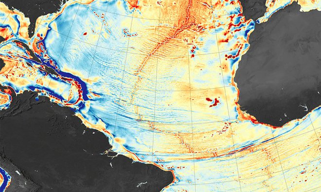 Результатом их совместной работы стал огромный объём информации о горных хребтах и долинах на основе изменяющегося гравитационного поля планеты. На составленной карте оттенки красного и оранжевого соответствует местам, где на морское дно оказывается наибольшее давление, то есть в местах расположения подводных гор, хребтов и по краям тектонических плит. Оттенки синего совпадают с самыми глубокими океанскими впадинами.