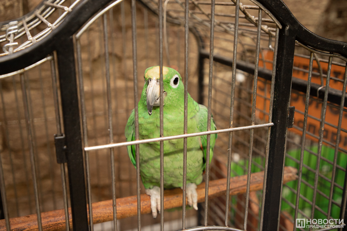 - Енот-коати (носуха) по кличке Джеки очень добродушный. Он и на руки залезет, и по спине пройдётся. Очень любит забирать у посетителей шнурки, резинки, заколки, цепочки, серёжки, часы.