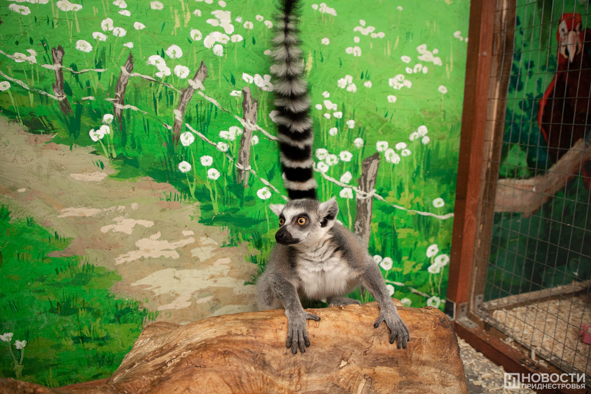 «Лемуры относятся к отряду мокроносых обезьян. С этими животными, населяющими остров Мадагаскар, связно много мифов и легенд. Их называют чёрными призраками, потому что они ведут ночной образ жизни. Самое уязвимое место у лемура - его хвост. Если хвост будет повреждён, животное может даже умереть», - сообщила директор зоопарка.